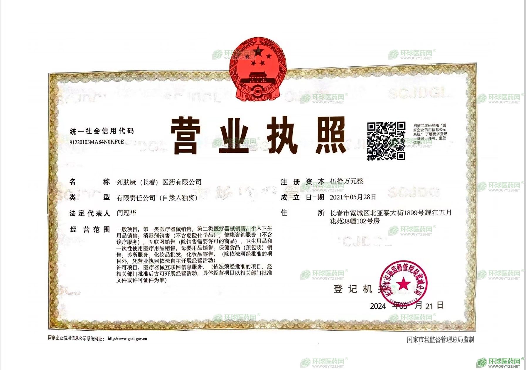 列膚康(長春)醫(yī)藥有限公司成立于2021年05月28日,注冊(cè)地位于長春市寬城區(qū)北亞泰大街1899號(hào)耀江五月花苑38幢102號(hào)房,法定代表人為閆冠華。經(jīng)營范圍包括一般項(xiàng)目:**類醫(yī)療器械銷售;第二類醫(yī)療器械銷售;個(gè)人衛(wèi)生用品銷售;消毒劑銷售(不含危險(xiǎn)化學(xué)品);健康咨詢服務(wù)(不含診療服務(wù));互聯(lián)網(wǎng)銷售(除銷售需要許可的商品);衛(wèi)生用品和一次性使用醫(yī)療用品銷售;母嬰用品銷售;保健食品(預(yù)包裝)銷售;診所服務(wù);化妝品批發(fā);化妝品零售。(除依法須經(jīng)批準(zhǔn)的項(xiàng)目外,憑營業(yè)執(zhí)照依法自主開展經(jīng)營活動(dòng))許可項(xiàng)目:醫(yī)療器械互聯(lián)網(wǎng)信息服務(wù)。(依法須經(jīng)批準(zhǔn)的項(xiàng)目,經(jīng)相關(guān)部門批準(zhǔn)后方可開展經(jīng)營活動(dòng),具體經(jīng)營項(xiàng)目以相關(guān)部門批準(zhǔn)文件或許可證件為準(zhǔn))