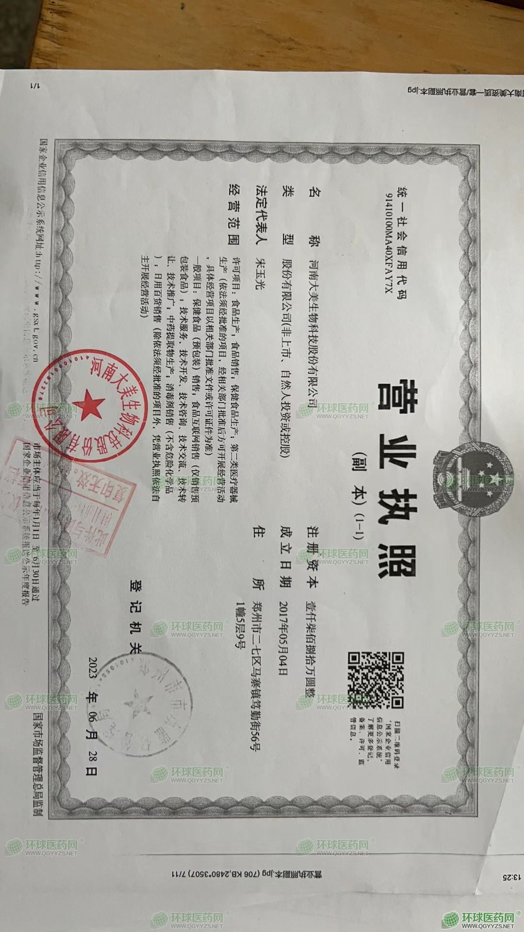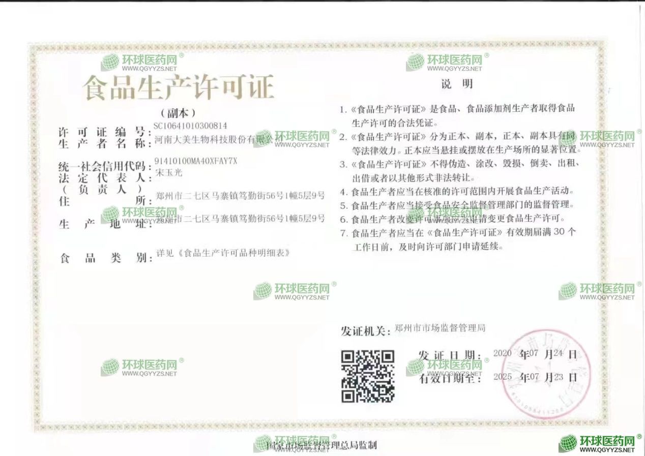 河南大美生物科技股份有限公司成立于2017年05月04日,注冊地位于鄭州市二七區(qū)馬寨鎮(zhèn)篤勤街56號1幢5層9號,法定代表人為宋玉光。經(jīng)營范圍包括許可項目:食品生產(chǎn);食品銷售;保健食品生產(chǎn);第二類醫(yī)療器械生產(chǎn)(依法須經(jīng)批準(zhǔn)的項目,經(jīng)相關(guān)部門批準(zhǔn)后方可開展經(jīng)營活動,具體經(jīng)營項目以相關(guān)部門批準(zhǔn)文件或許可證件為準(zhǔn))一般項目:保健食品(預(yù)包裝)銷售;食品互聯(lián)網(wǎng)銷售(僅銷售預(yù)包裝食品);技術(shù)服務(wù)、技術(shù)開發(fā)、技術(shù)咨詢、技術(shù)交流、技術(shù)轉(zhuǎn)讓、技術(shù)推廣;中藥提取物生產(chǎn);消毒劑銷售(不含危險化學(xué)品);日用百貨銷售(除依法須經(jīng)批準(zhǔn)的項目外,憑營業(yè)執(zhí)照依法自主開展經(jīng)營活動)
