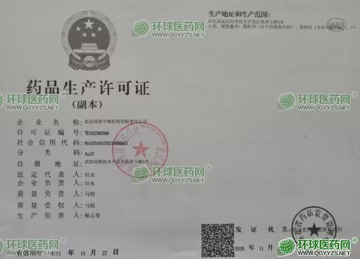 發(fā)證機關: 湖北省藥品監(jiān)督管理局