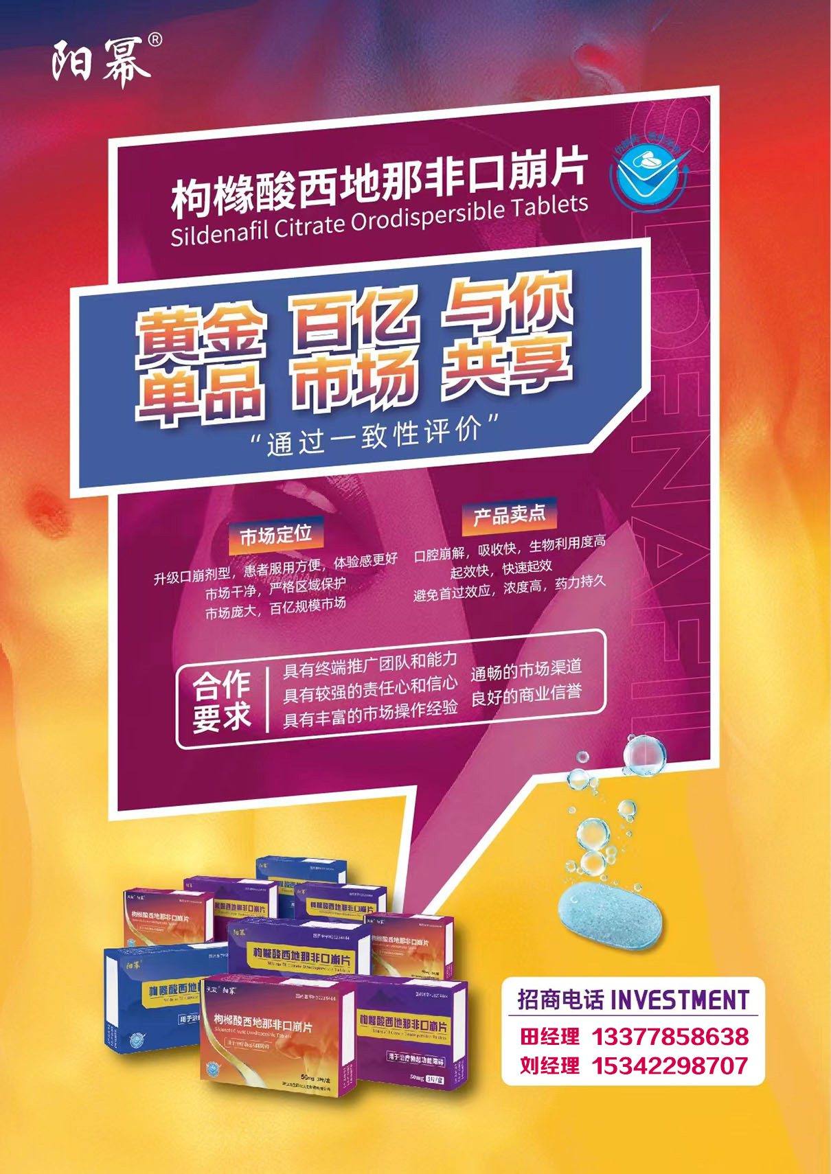 【陽冪®】枸櫞酸西地那非口崩片招商,ED用藥,口崩劑型,快速起效,藥力持久