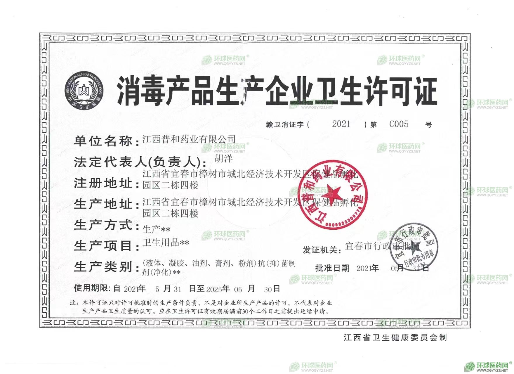 - 消毒產(chǎn)品生產(chǎn)企業(yè)衛(wèi)生許可證