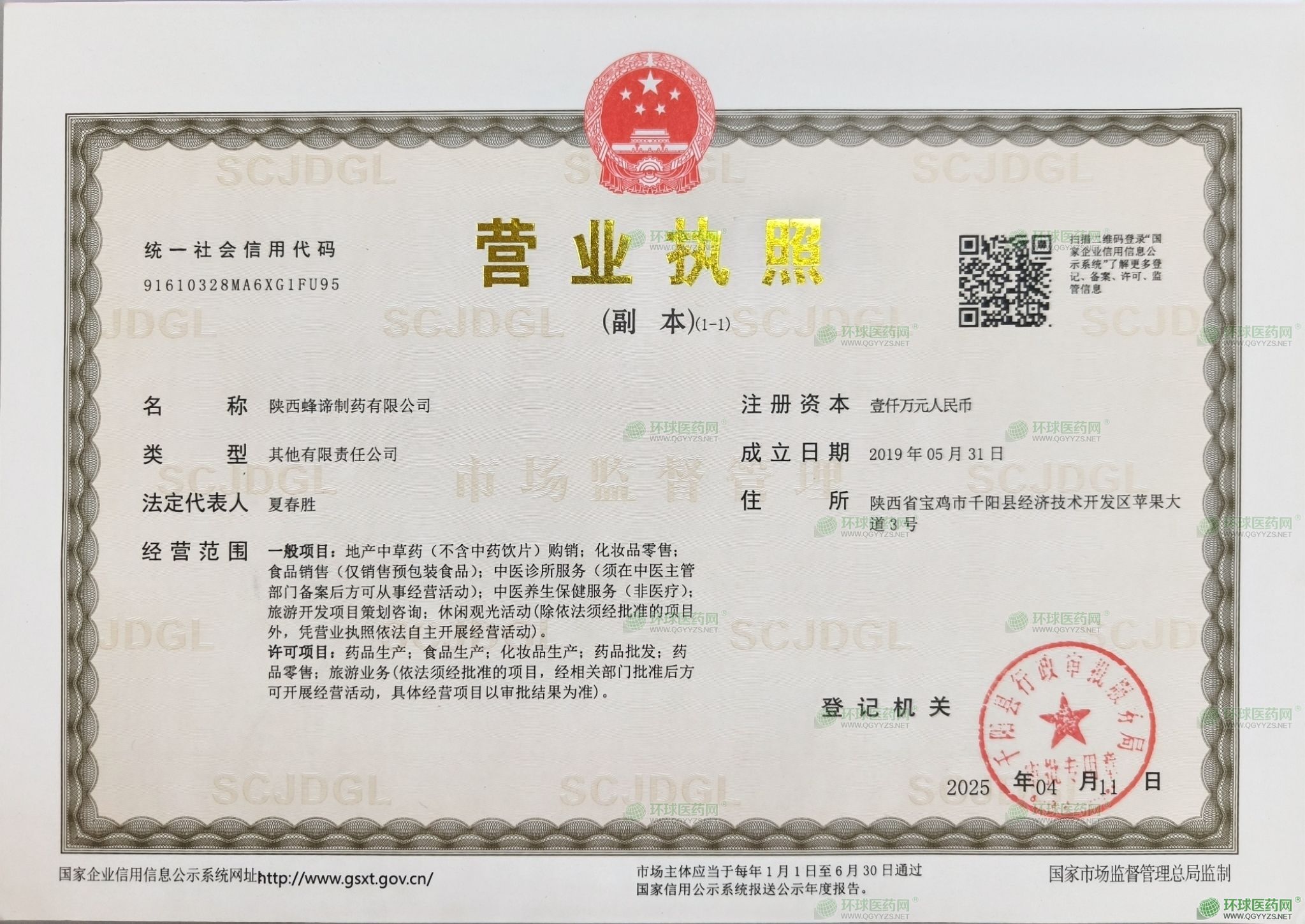 發(fā)證機關(guān): 陜西省藥品監(jiān)督管理局