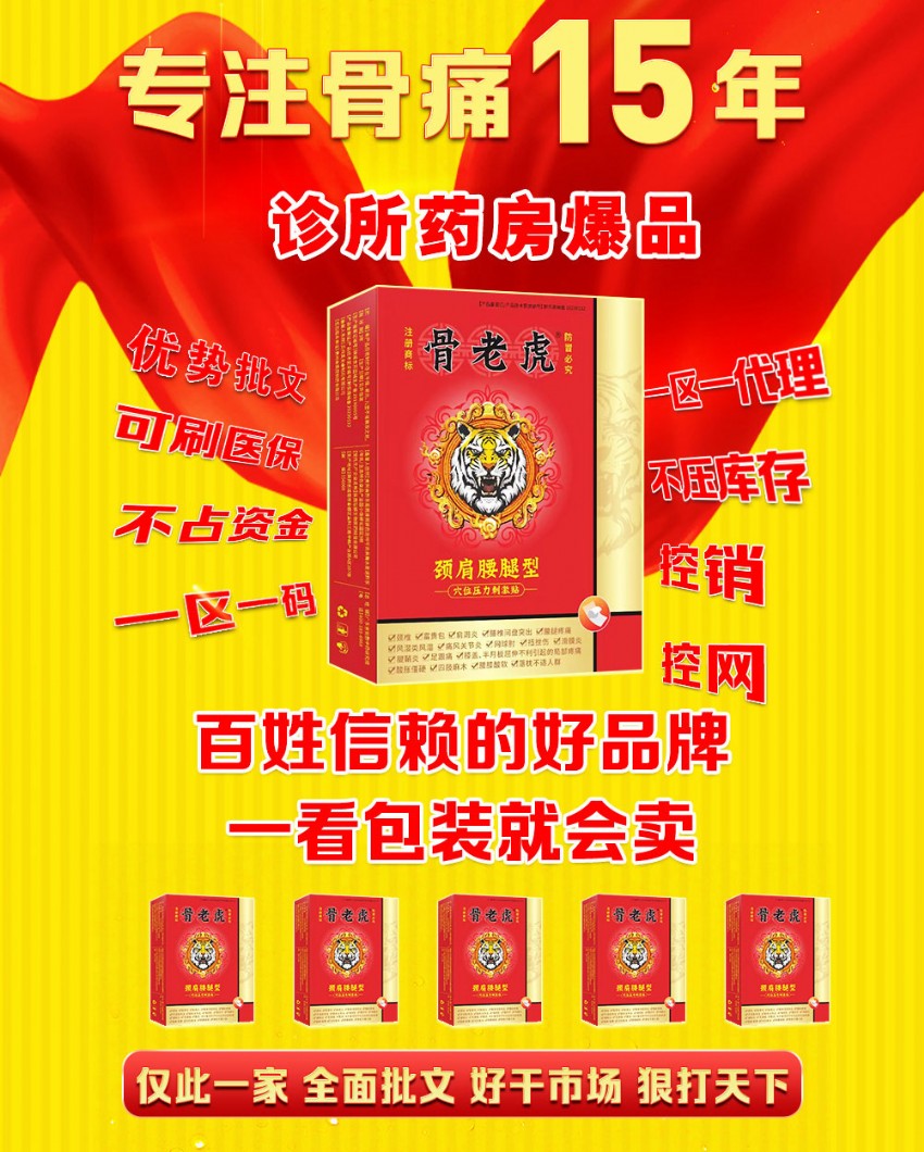 骨老虎:骨痛貼專注骨痛15年,優(yōu)質(zhì)批文,可刷醫(yī)保,一區(qū)一代理,控銷,不壓庫存!