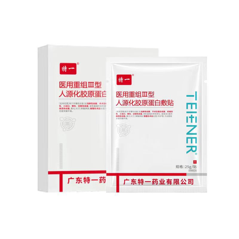 - 醫(yī)用重組III型人源化膠原蛋白敷貼 批準(zhǔn)文號: 湘械注準(zhǔn)20222141639規(guī) 格: 5貼/盒