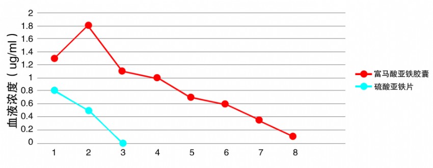 口服富馬酸亞鐵膠囊與硫酸亞鐵片后的平均藥時曲線