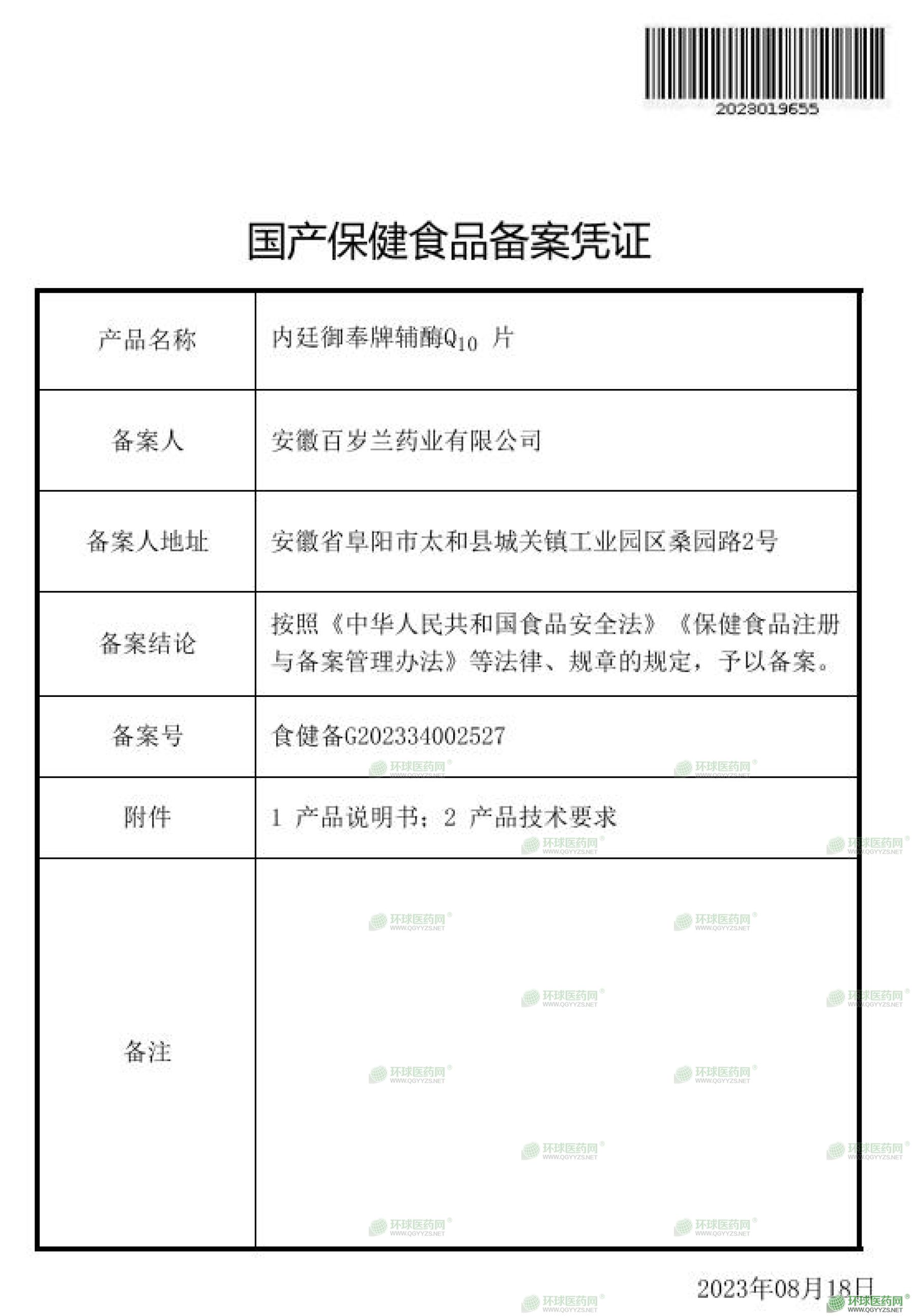 - 國產(chǎn)保健食品備案憑證-輔酶Q10