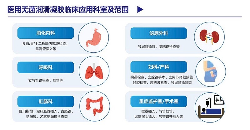 產(chǎn)品用途:用于導(dǎo)管或醫(yī)療器械進入人體自然腔道的潤滑;婦檢、內(nèi)窺鏡檢查時的潤滑,呼吸道、消化道、尿道、陰道、直腸和肛門及檢查器械的導(dǎo)入潤滑。
