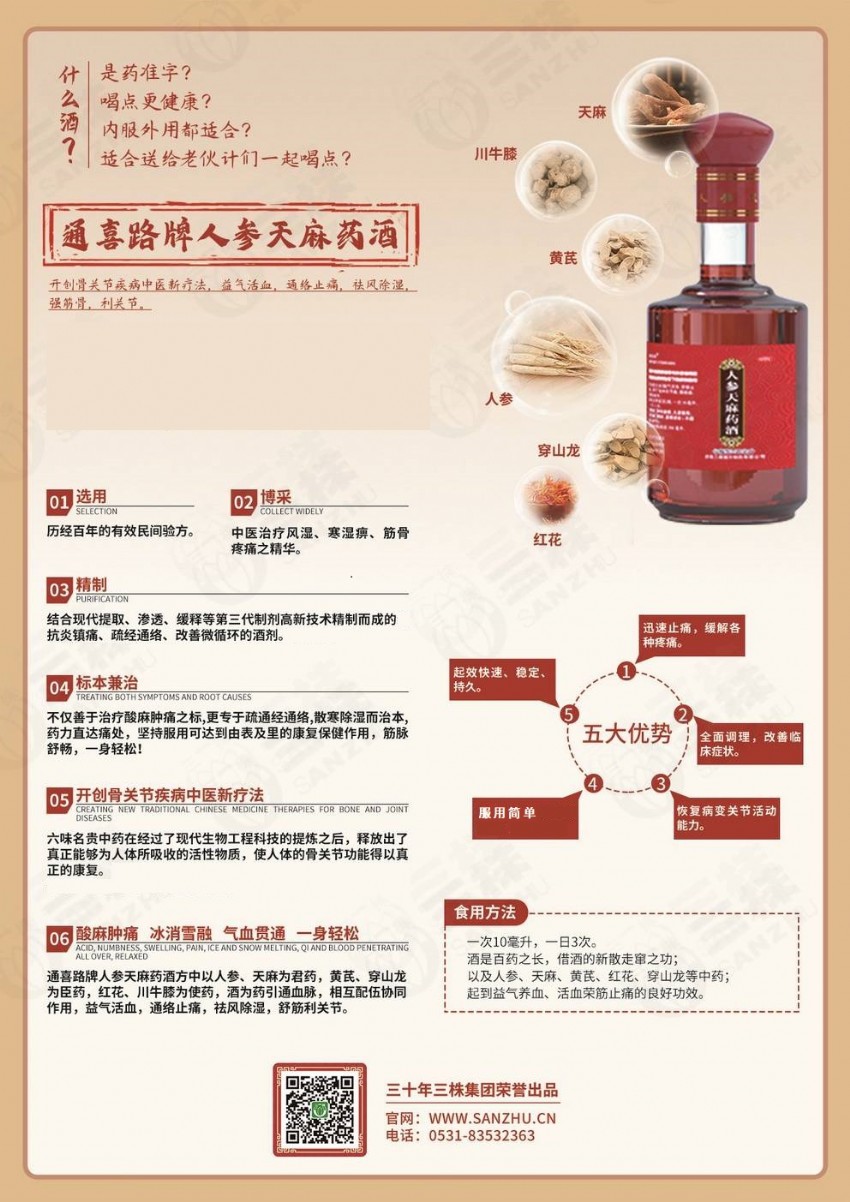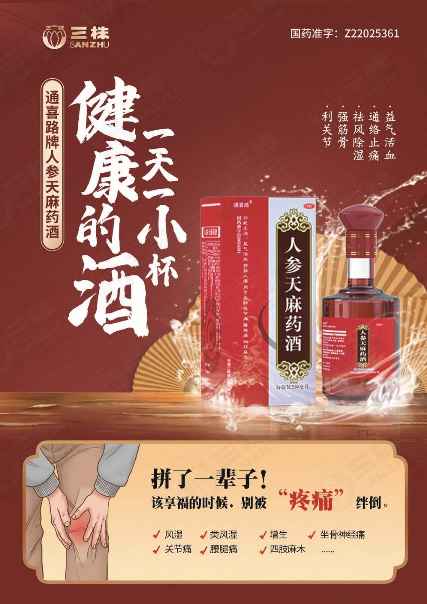 【三株】人參天麻藥酒招商,國藥準字,OTC品種,抗炎鎮(zhèn)痛,疏經(jīng)通絡(luò),緩解多種疼痛!