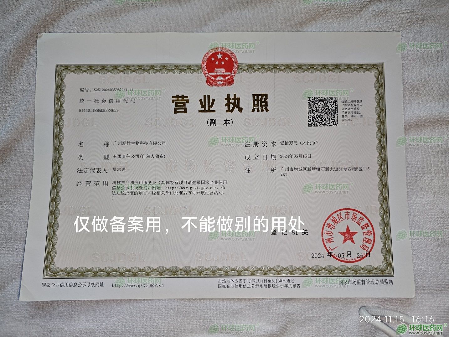 廣州觀竹生物科技有限公司成立于2024年05月15日,注冊地位于廣州市增城區(qū)新塘鎮(zhèn)石新大道51號四樓B區(qū)1157房,法定代表人為周志強。經營范圍包括生物基材料技術研發(fā);技術服務、技術開發(fā)、技術咨詢、技術交流、技術轉讓、技術推廣;特殊醫(yī)學用途配方食品銷售;食品互聯(lián)網銷售(僅銷售預包裝食品);化妝品批發(fā);化妝品零售;互聯(lián)網銷售(除銷售需要許可的商品);寵物食品及用品批發(fā);寵物食品及用品零售;食品添加劑銷售;食品銷售(僅銷售預包裝食品);國內貿易代理;市場營銷策劃;企業(yè)管理咨詢;信息咨詢服務(不含許可類信息咨詢服務);日用百貨銷售;農副產品銷售;水產品收購;消毒劑銷售(不含危險化學品);;藥品零售;消毒器械銷售;進出口代理;