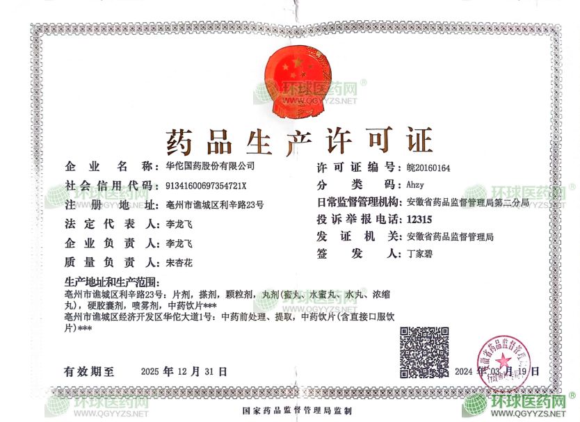 發(fā)證機關: 安徽省藥品監(jiān)督管理局