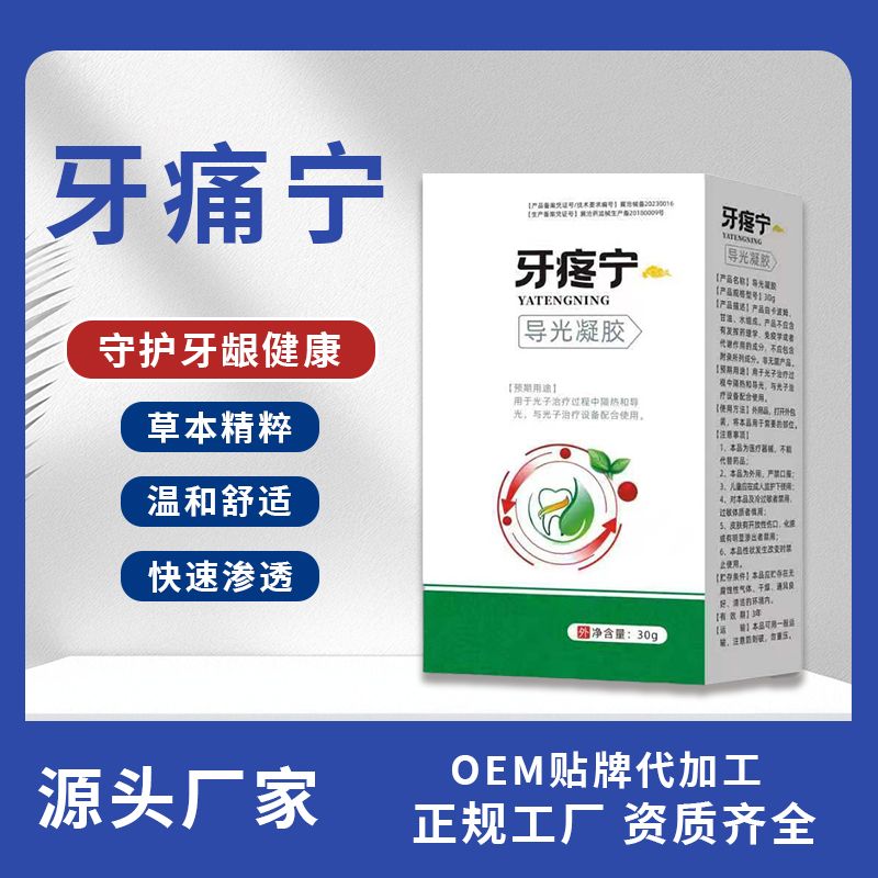 - 牙疼寧導(dǎo)光凝膠緩解牙痛口腔問(wèn)題貼牌定制 批準(zhǔn)文號(hào): 冀滄械備20230016規(guī) 格: 詳見(jiàn)產(chǎn)品說(shuō)明書(shū)
