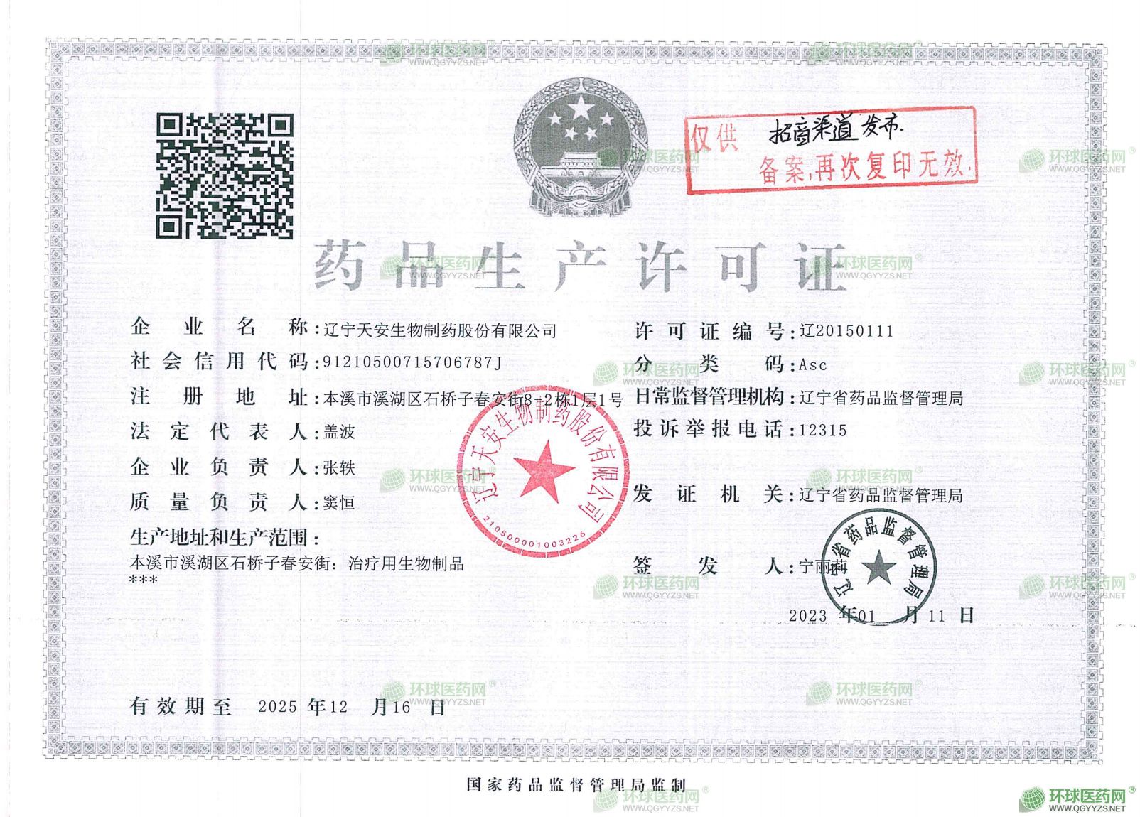 遼寧天安生物制藥股份有限公司