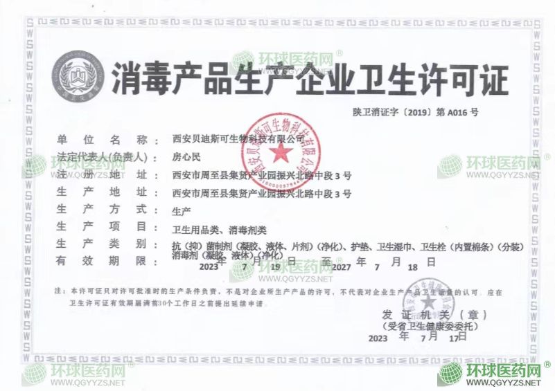 - 消毒產(chǎn)品生產(chǎn)企業(yè)衛(wèi)生許可證