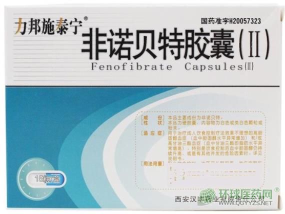 【藥理】本品為氯貝丁酸衍生物類血脂調(diào)節(jié)藥,通過(guò)抑制極低密度脂蛋白和甘油三酯的生成并同時(shí)使其分解代謝增多,降低血低密度脂蛋白、膽固醇和甘油三酯;還使載脂蛋白A1和A11生成增加,從而增高高密度脂蛋白。本品尚有降低正常人及高尿酸血癥患者的血尿酸作用。動(dòng)物實(shí)驗(yàn)表明,非諾貝特具有致畸性和致癌性。