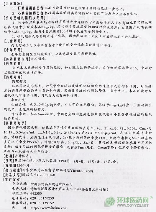 【成份】本品主要成份是福多司坦。