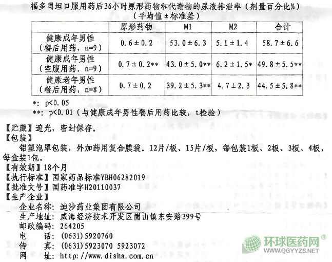 - 本頁面信息僅供參考,請(qǐng)以產(chǎn)品實(shí)際附帶說明書為準(zhǔn)。 迪沙藥業(yè) 福多司坦片 外包裝 迪沙藥業(yè) 福多司坦片 說明書