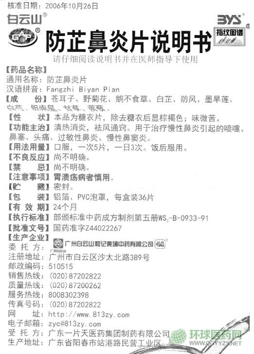- 白云山防芷鼻炎片說(shuō)明書(shū)