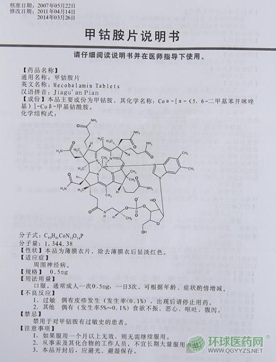 - 本頁面信息僅供參考,請以產(chǎn)品實際附帶說明書為準(zhǔn)。 亞寶藥業(yè) 甲鈷胺片 說明書 文字版 見以下圖片 亞寶藥業(yè) 甲鈷胺片 說明書圖