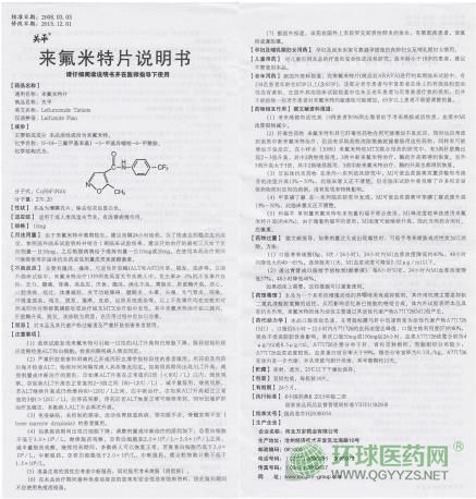 - 本頁面信息僅供參考,請以產(chǎn)品實際附帶說明書為準(zhǔn)。 來氟米特片 (關(guān)平)說明書文字版 【藥品名稱】通用名稱:來氟米特片 商品名稱