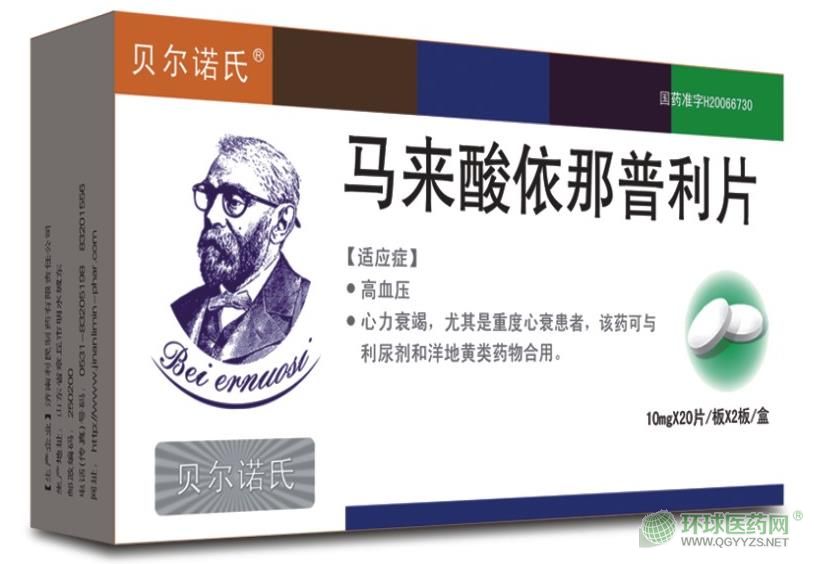 - 本頁(yè)面信息僅供參考,請(qǐng)以產(chǎn)品實(shí)際附帶說(shuō)明書為準(zhǔn)。 貝爾諾氏 馬來(lái)酸依那普利片 說(shuō)明書文字版 【藥品名稱】 馬來(lái)酸依那普利片 商