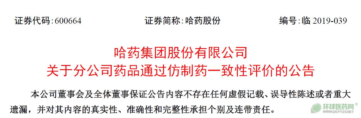 - 這個(gè)藥品,6家過評(píng)。 ▍又一大品種,通過一致性評(píng)價(jià) 7月16日,哈藥集團(tuán)股份有限公司發(fā)布《關(guān)于分公司藥品通過仿制藥一致性評(píng)價(jià)的