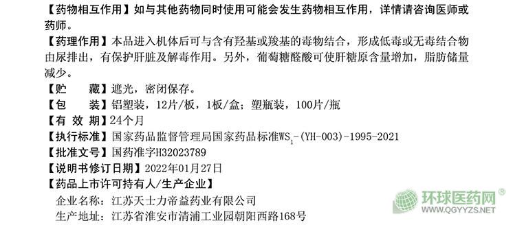 - 本頁面信息僅供參考,請以產(chǎn)品實際附帶說明書為準(zhǔn)。 天津力生制藥 葡醛內(nèi)酯片 說明書圖片版 天津力生制藥 葡醛內(nèi)酯片