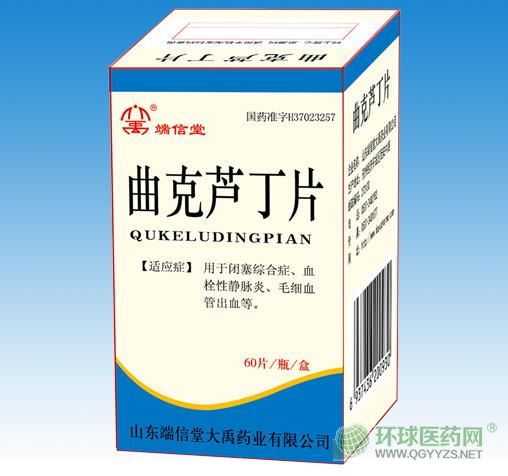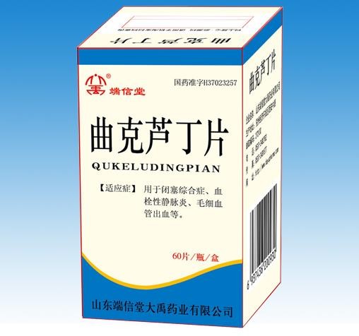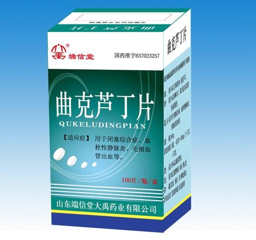- 本頁(yè)面信息僅供參考,請(qǐng)以產(chǎn)品實(shí)際附帶說明書為準(zhǔn)。 山東端信堂曲克蘆丁片 (維腦路通片)外包裝 山東端信堂曲克蘆丁片