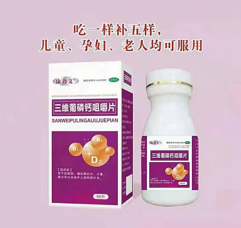 【成份】本品為復方制劑,每片含葡萄糖酸鈣150毫克,(相當于鈣13.5毫克),磷酸氫鈣100毫克,(相當于鈣24毫克),維生素B1 0.5毫克,維生素B2 0.5毫克,維生素D21.5微克(60單位)。輔料為: