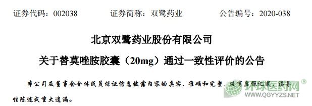 - 雙鷺?biāo)帢I(yè)替莫唑胺膠囊通過一致性評(píng)價(jià)