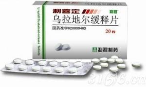 【成份】烏拉地爾 化學(xué)名稱為:6([3-[4-(2-甲氧基苯基)-1-哌嗪基]丙基]氨基)-1.3-二甲基-2-4(1H,3H)-嘧啶-二酮分子式:C20H29N5O3分子量:387.5