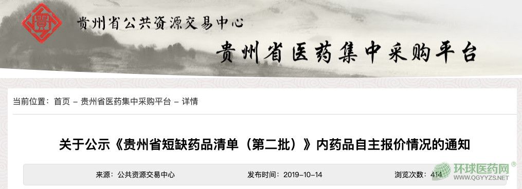 - 多個藥品,大幅漲價,硝酸甘油片(0.5mg*100片)從4.5元漲到159元。 ▍部分短缺藥漲價 10月14日,貴州省醫(yī)藥集中采購平臺發(fā)布《貴
