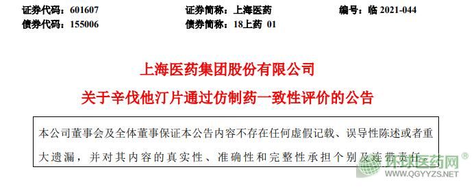 - 上海醫(yī)藥辛伐他汀片通過仿制藥一致性評價