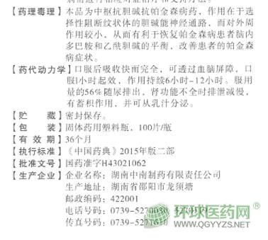 【適應(yīng)癥】用于帕金森病、帕金森綜合征。也可用于藥物引起的錐體外系疾患。