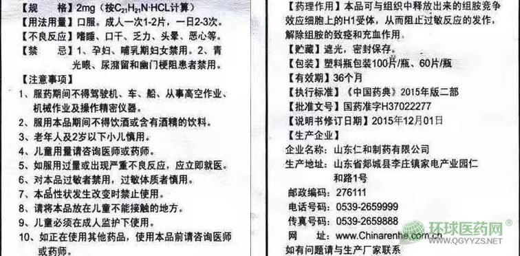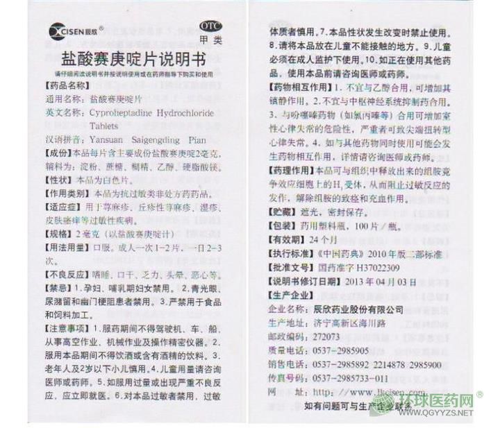 - 本頁面信息僅供參考,請以產(chǎn)品實際附帶說明書為準(zhǔn)。 山東辰欣藥業(yè) 鹽酸賽庚啶片 說明書圖片版 山東辰欣藥業(yè)鹽酸賽庚啶片說明書