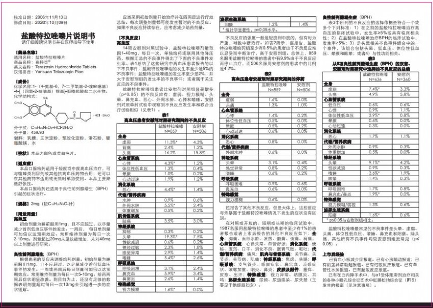 英文名稱:TerazosinHydrochlorideTablets