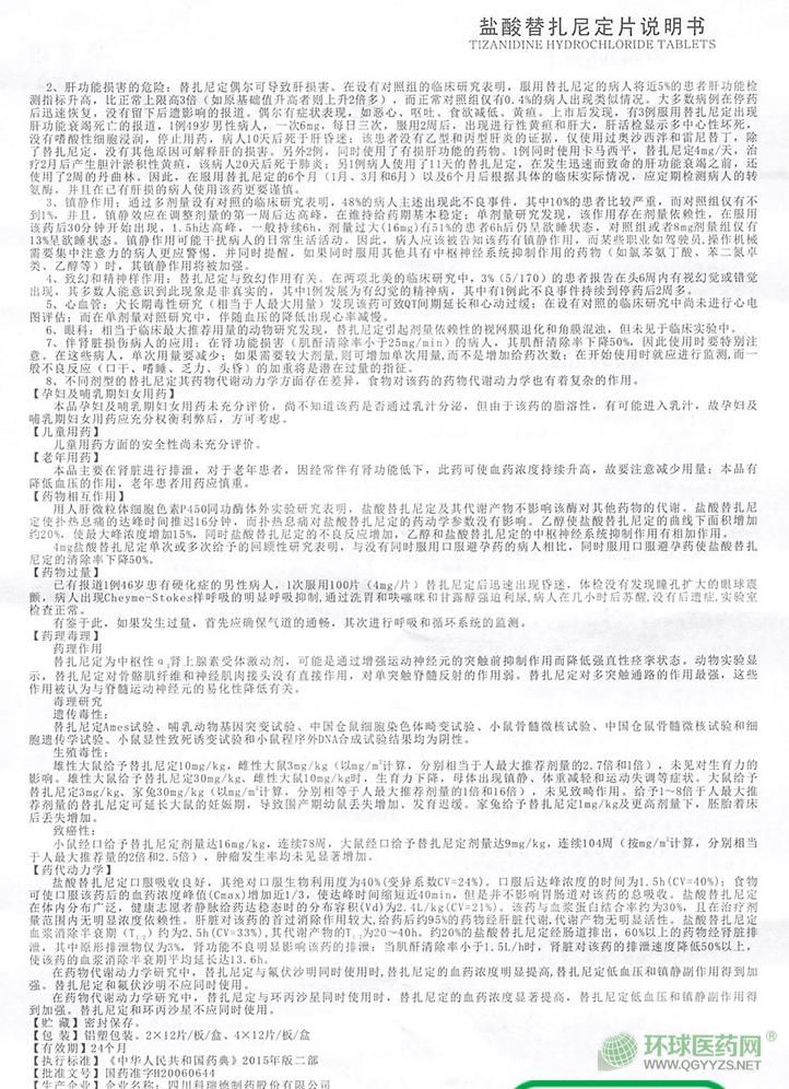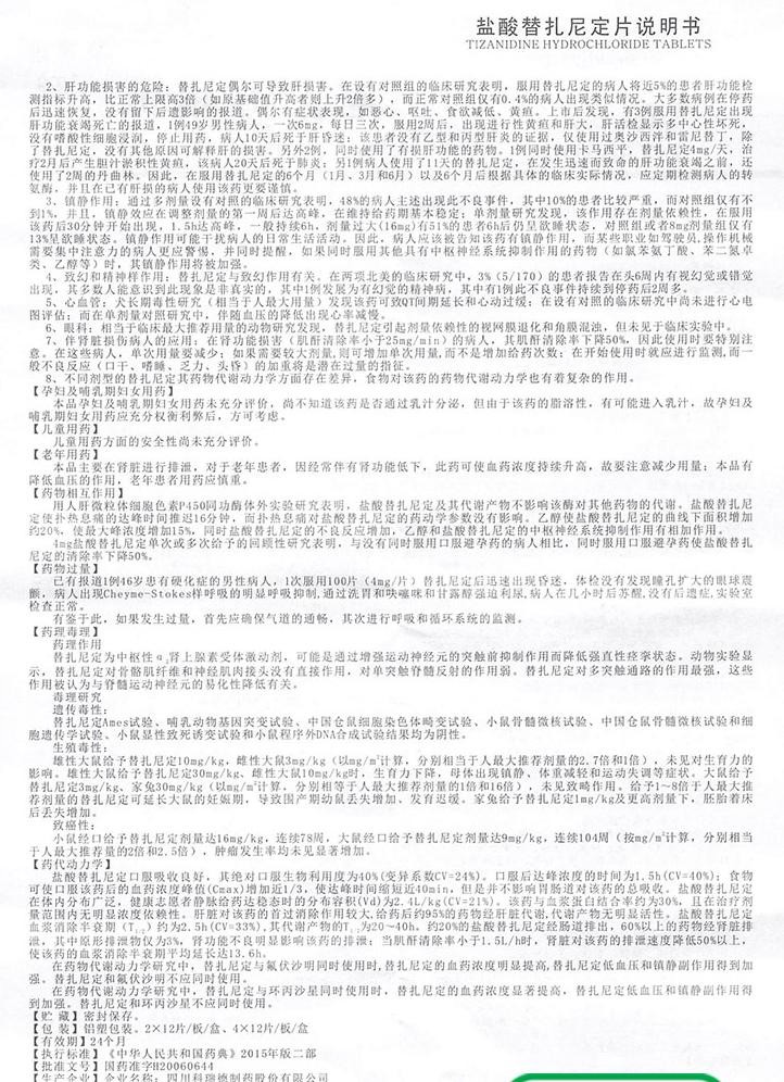 - 本頁面信息僅供參考,請以產(chǎn)品實際附帶說明書為準。 凱萊通鹽酸替扎尼定片 外包裝 凱萊通鹽酸替扎尼定片 說明書圖片(