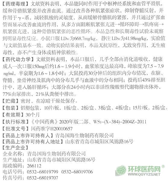 【藥理】文獻(xiàn)資料表明,本品能同時(shí)作用于中樞神經(jīng)系統(tǒng)和血管平滑肌,緩和骨骼肌緊張并改善血流。通過(guò)改善哉各種肌緊張癥狀抑制脊髓反射,并且通過(guò)擴(kuò)張血管而顯示改善血流的作用,從多方面陰斷緊張亢進(jìn)→循環(huán)障礙→肌疼痛→肌緊張亢進(jìn),這種骨骼肌的惡性循環(huán)。