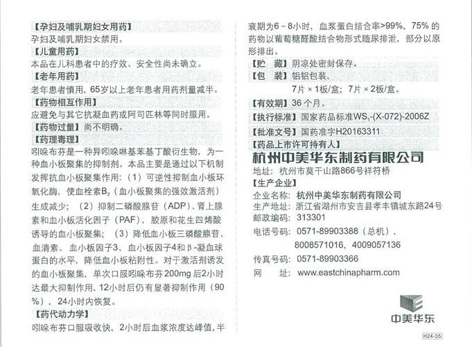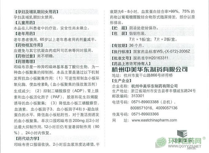 西藥、處方藥、醫(yī)保乙類。用于動脈硬化引起的缺血性心血管病變、缺血性腦血管病變、靜脈血栓形成。也可用于血液透析時預(yù)防血栓形成。生產(chǎn)廠家為:杭州中美華東制藥有限公司。目前在環(huán)球醫(yī)藥網(wǎng)有多款藥品招商。【藥品名稱】