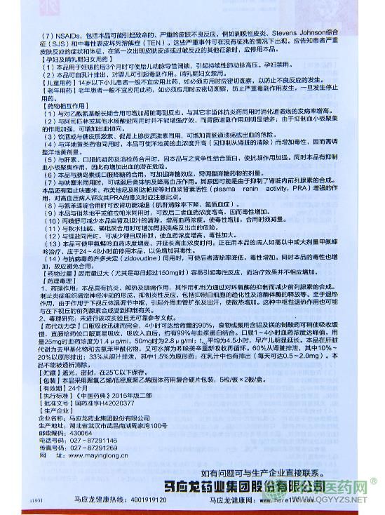 - 馬應(yīng)龍吲哚美辛栓說明書