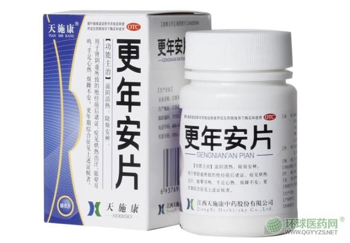 中成藥、雙跨藥、醫(yī)保甲類(lèi)。滋陰清熱,除煩安神。用于腎陰虛所致的絕經(jīng)前后諸證,癥見(jiàn)烘熱出汗,眩暈耳鳴、手足心熱、煩躁不安;更年期綜合征見(jiàn)上述證候者。有多家企業(yè)生產(chǎn)。目前有多家在環(huán)球醫(yī)藥網(wǎng)招商。【藥品名稱(chēng)】通用名稱(chēng):更年安片