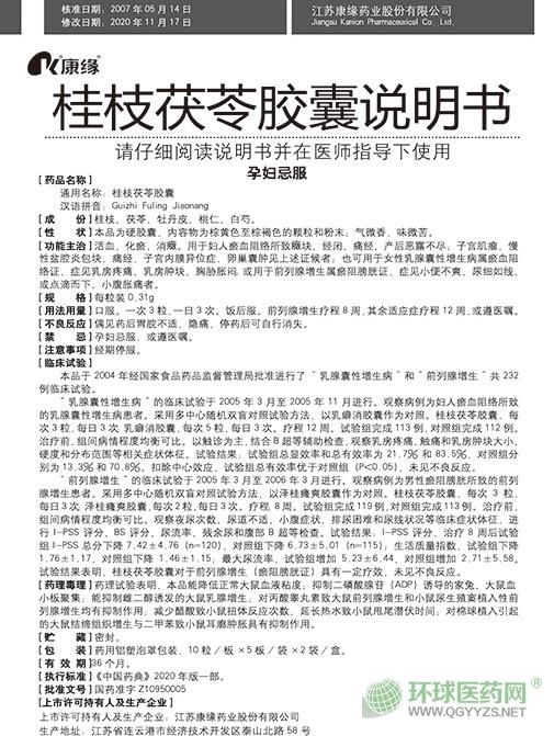 中成藥、處方藥、醫(yī)保甲類;钛、化瘀。用于婦人淤血阻絡(luò)所致經(jīng)閉,痛經(jīng),產(chǎn)后惡露不盡,子宮肌瘤,慢性盆腔炎包塊,痛經(jīng),子宮內(nèi)膜異味癥,卵巢囊腫見上述癥候者。江蘇康緣藥業(yè)股份有限公司生產(chǎn)。目前在環(huán)球醫(yī)藥網(wǎng)招商。【藥品名稱】通用名稱:桂枝茯苓膠囊