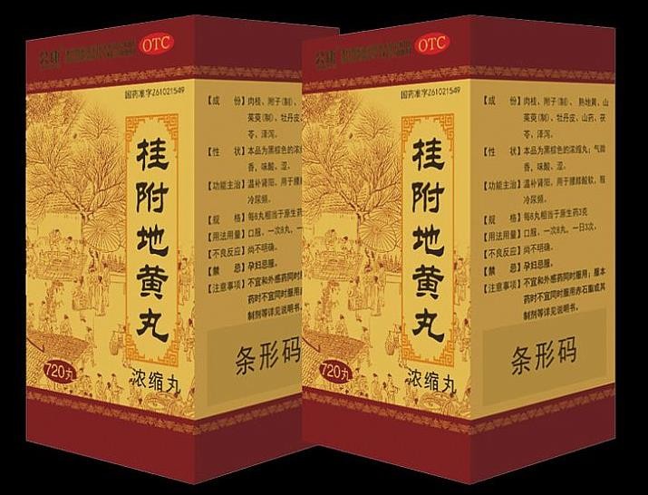 中成藥、OTC甲類、醫(yī)保乙類。溫補(bǔ)腎陽。用于腎陽不足,腰膝痠冷,小便不利或反多,痰飲喘咳。招商廠家:黑龍江省仁皇醫(yī)藥有限公司、沈陽天行健醫(yī)藥有限公司、江西康之源醫(yī)藥有限公司、吉林省毅源堂藥業(yè)有限公司等等。【藥品名稱】通用名稱:桂附地黃丸