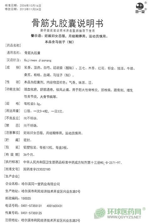 - 本頁面信息僅供參考,請以產(chǎn)品實際附帶說明書為準。 哈爾濱同一堂 骨筋丸膠囊 說明書文字版 【藥品名稱】通用名稱:骨筋丸膠囊 漢