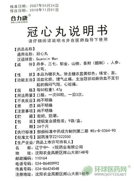 - 本頁(yè)面信息僅供參考,請(qǐng)以產(chǎn)品實(shí)際附帶說(shuō)明書(shū)為準(zhǔn)。 合力康冠心丸 說(shuō)明書(shū)文字版 【藥品名稱(chēng)】通用名稱(chēng):冠心丸 【成份】丹參、三