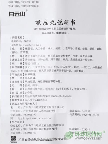 - 白云山敬修堂喉癥丸說明書