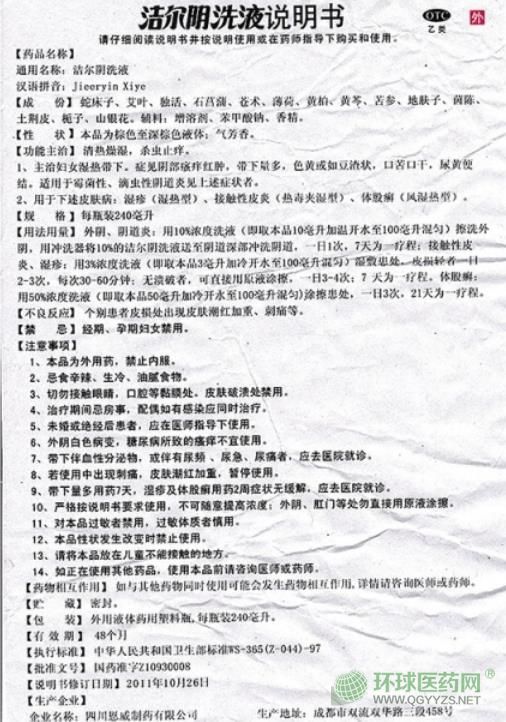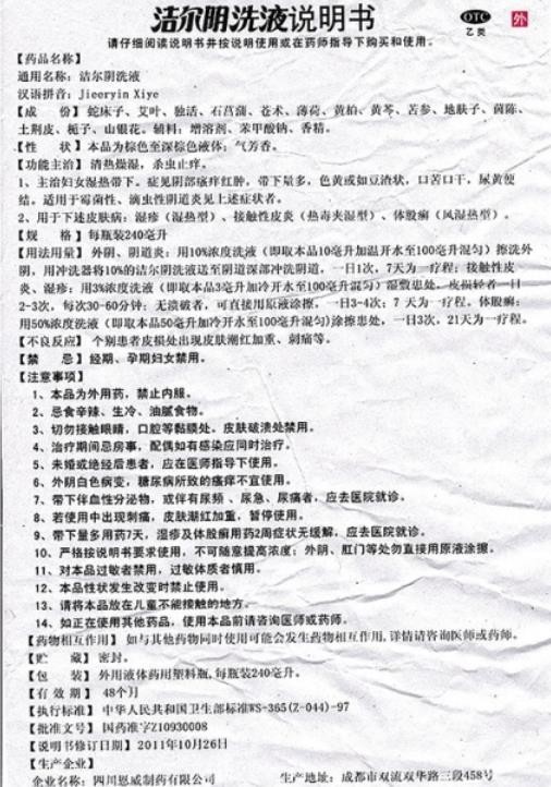 - 本頁(yè)面信息僅供參考,請(qǐng)以產(chǎn)品實(shí)際附帶說(shuō)明書為準(zhǔn)。 四川恩威制藥 潔爾陰洗液 說(shuō)明書文字版 【藥品名稱】 潔爾陰洗液(恩威)