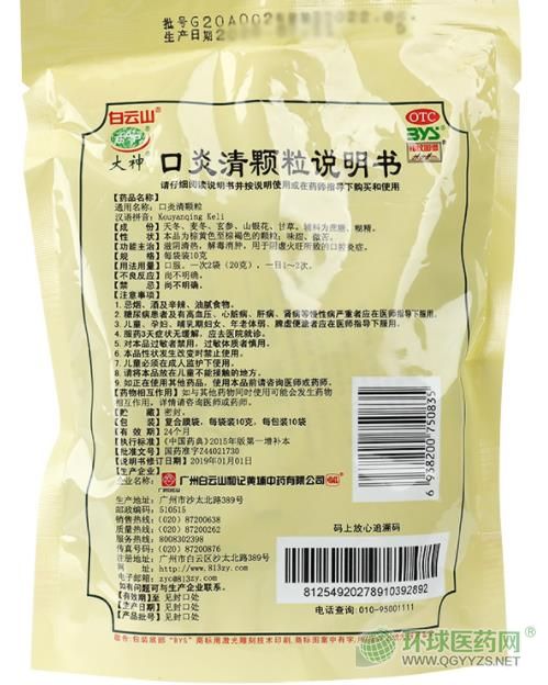 - 本頁(yè)面信息僅供參考,請(qǐng)以產(chǎn)品實(shí)際附帶說(shuō)明書(shū)為準(zhǔn)。 廣州白云山(大神) 口炎清顆粒 說(shuō)明書(shū)圖片版 廣州白云山(大神) 口炎清顆粒