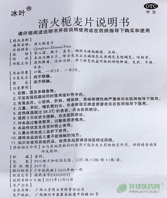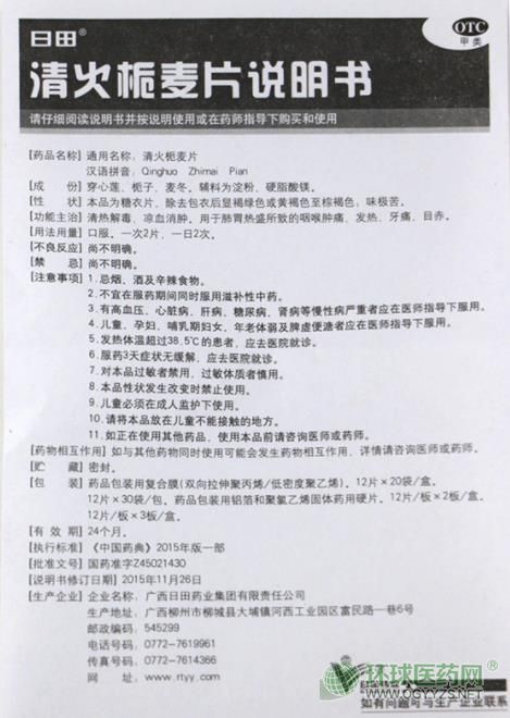 【藥品名稱】通用名稱:清火梔麥片