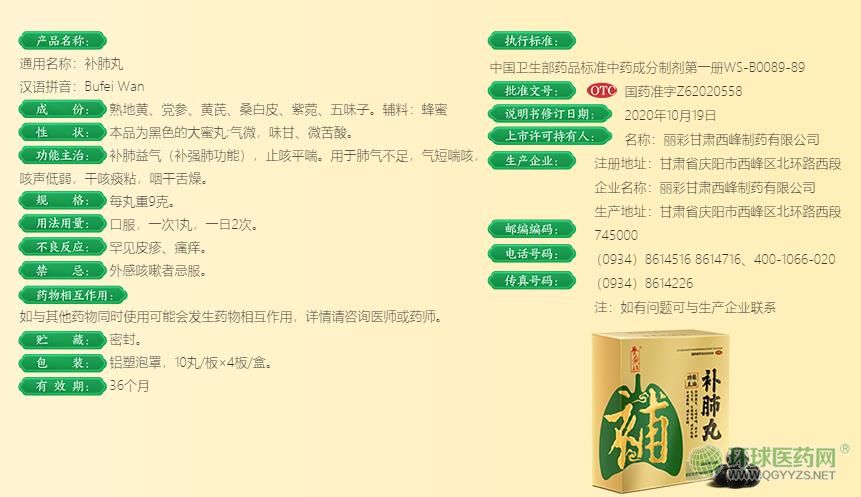 中成藥、OTC甲類、非醫(yī)保。補(bǔ)肺益氣,止咳平喘。用于肺氣不足,氣短喘咳,咳聲低弱,干咳痰粘,咽干舌燥。招商廠家;吉林長春道康閣藥品零售有限責(zé)任公司【藥品名稱】通用名稱:補(bǔ)肺丸
