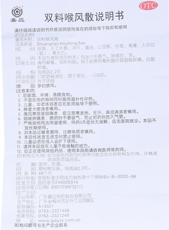 - 嘉應(yīng)雙料喉風(fēng)散說明書_圖片_生產(chǎn)廠家